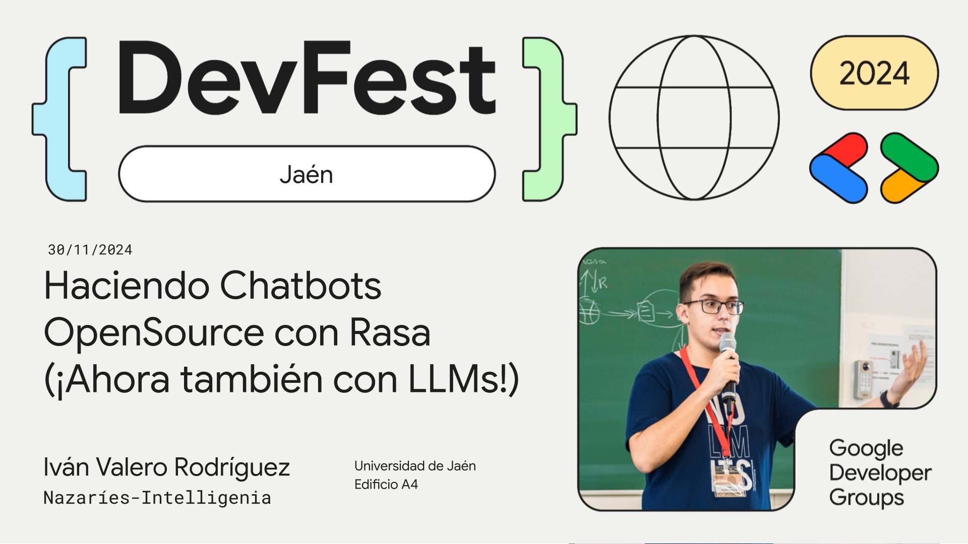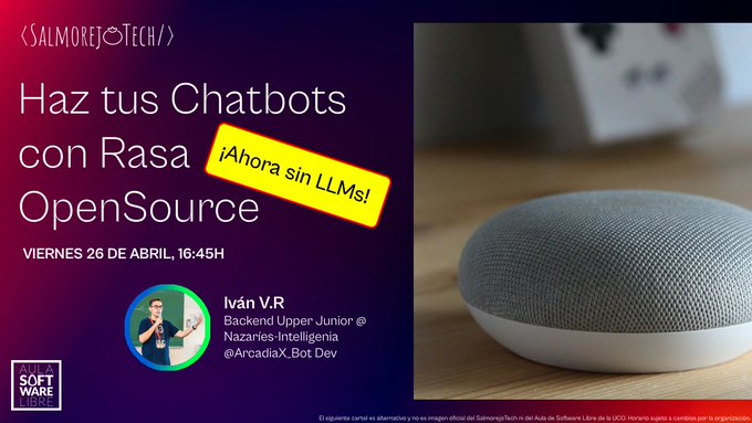Tercera versión de la charla, enfocándome mucho en la plataforma Rasa y contando cómo hacer chatbots con esa herramienta.